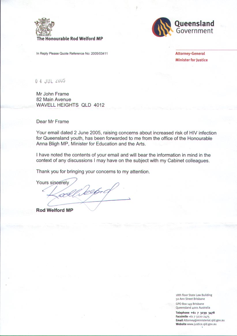 advising receipt of a forwarded email from Education Minister Anna Bligh ( she had advised me she would do this). I was given some